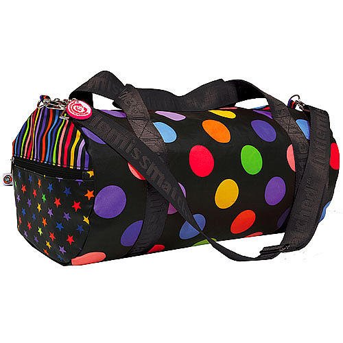 Have a marvelous time with our LittleMissMatched Duffle Bag - Black Zany! Whether you're going to the gym, the store, or work, this bag will carry all of your things in one great big compartment, along with a couple of kooky pockets for your knickknacks and sprockets! printed interior pocket.LMM branded woven straps. adjustable shoulder strap. inside and side pockets. 19.5" x 9"d.